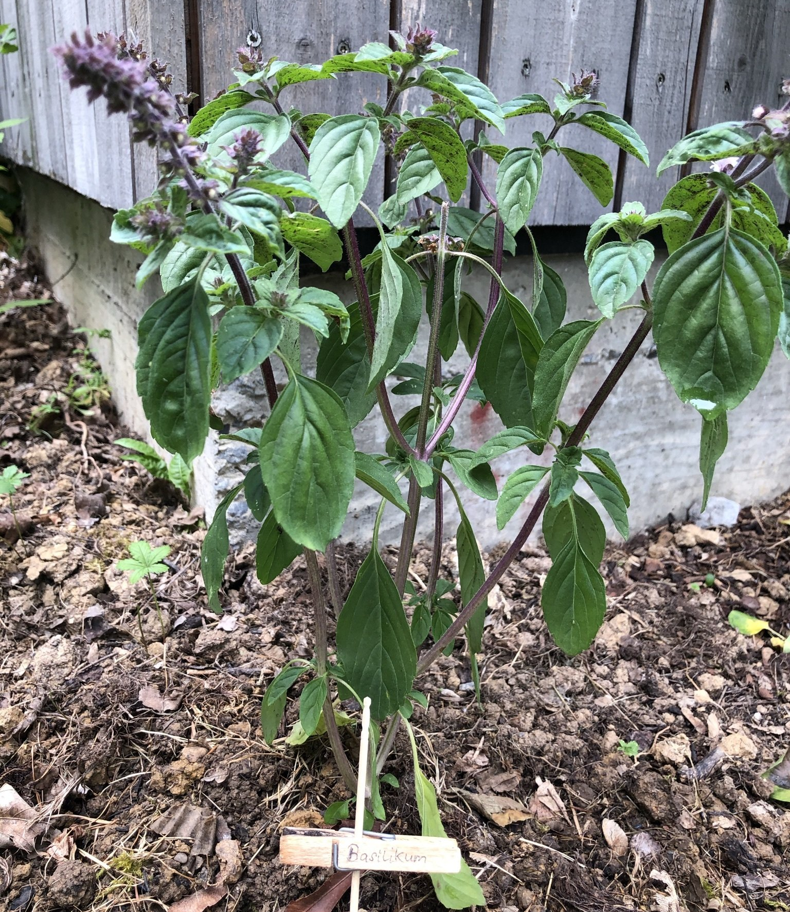 Im Rahmen des Beet im Beet Konzepts kommen dazu einige Gewürzpflanzen: Liebstöckel, Thai Basilikum, Basilikum und Oregano.